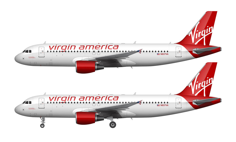 Virgin America A320 Side View Illustrations